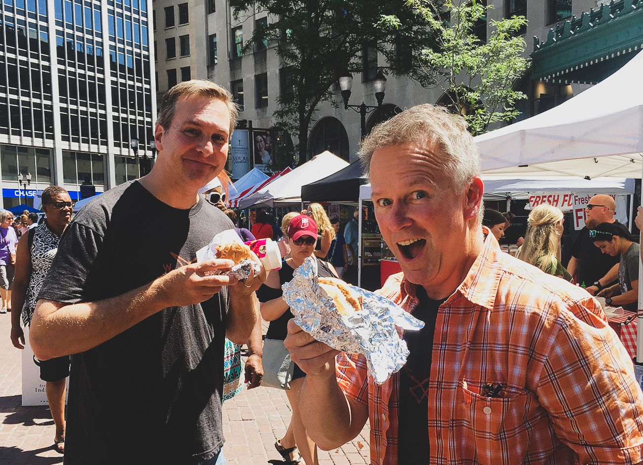 David and Senior Art Director, Scott Arvin, chow down at the Monumental Marketplace in support of our Indiana Grown members.