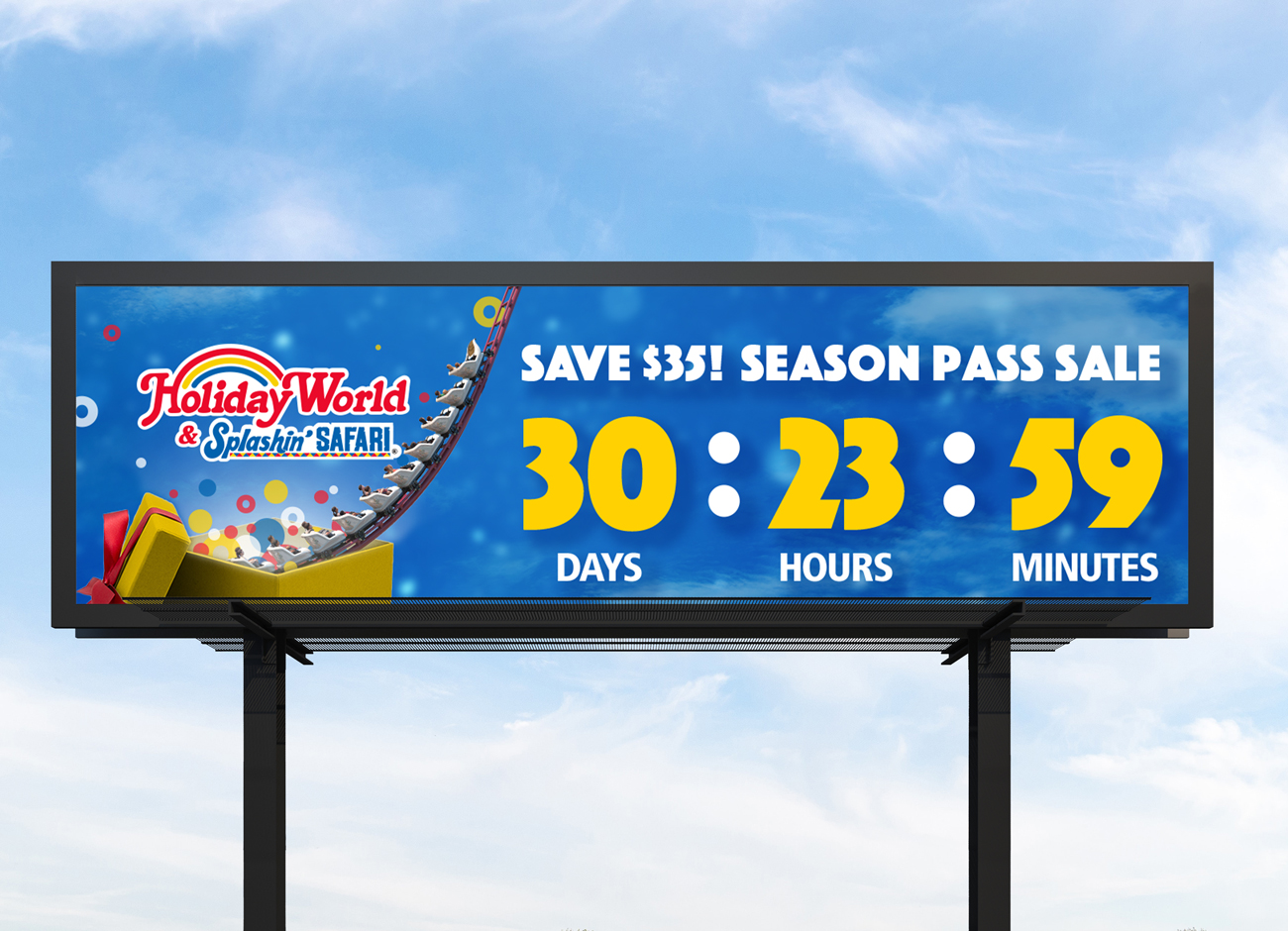 - An earlier start to the campaign than in the previous year, to align with the park’s announcement of a new family-friendly ride opening. We used that organic momentum to bolster Season Pass sales while promoting the new attraction.