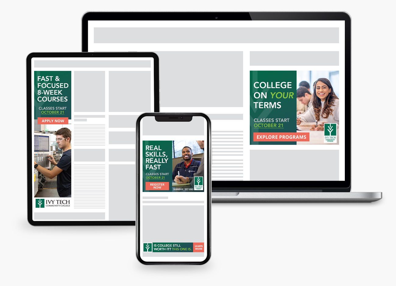 Since the completion of the website redesign and brand refresh in 2022, our work with the college’s primary marketing office has continued with the expressed purpose of growing student enrollment across the Ivy Tech Community College network as a whole.