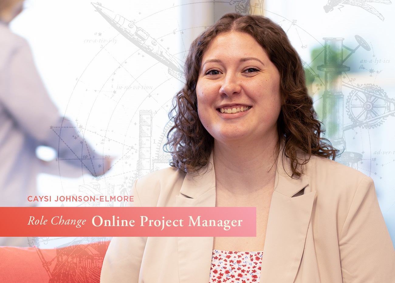 Who better to explain our new Online Project Manager’s duties than Caysi herself? “I’ll be setting the [web] projects up for success with the appropriate team members,” she says, “checking in regularly to ensure efficient pacing, providing updates to the client, acting as a messenger for their feedback, and promoting any additional services available to clients to support additional opportunities to work together.” Sounds like exactly the right job for someone with exceptional analytical, organizational and people skills. Congratulations, Caysi!
