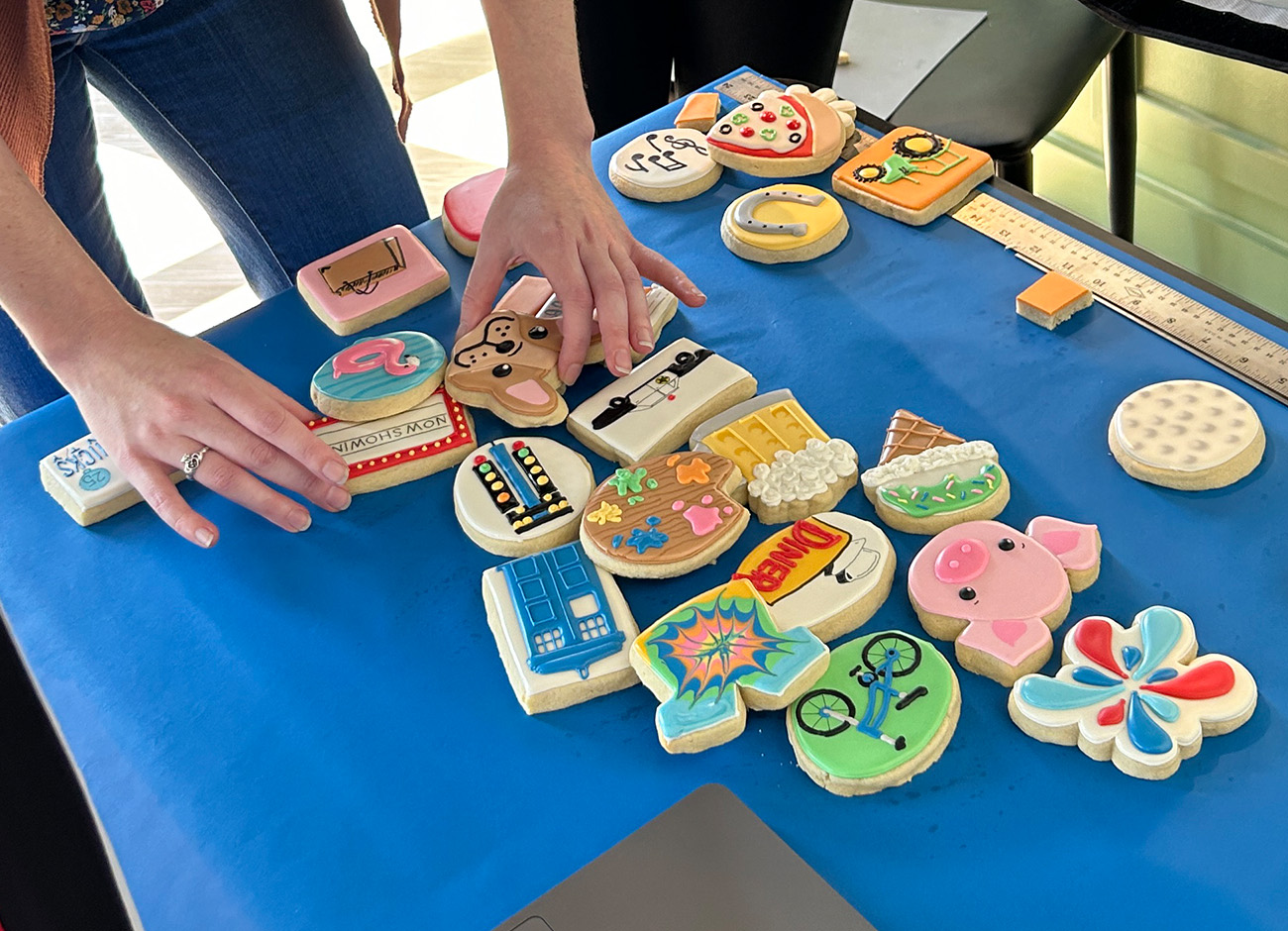 For previous guides, we have leaned into original photography and custom illustrations. Both options provided interesting ways to highlight key attractions. For the 2024 guide, we decided to do something entirely different: we paired up with Mama Bird Bakery to design cookies that represent some of the county’s top attractions. We worked with the local baker to determine which attractions would showcase well on the cookies, then let Mama Bird work their baking magic. A few weeks later we met back at the bakery to select and photograph cookies for the cover and inside editorial pages. Throughout the guide, you’ll see cookies that highlight the Doctor Who Museum, Lucas Oil Indianapolis Raceway, Oasis Diner, coffee shops, trails, and more.