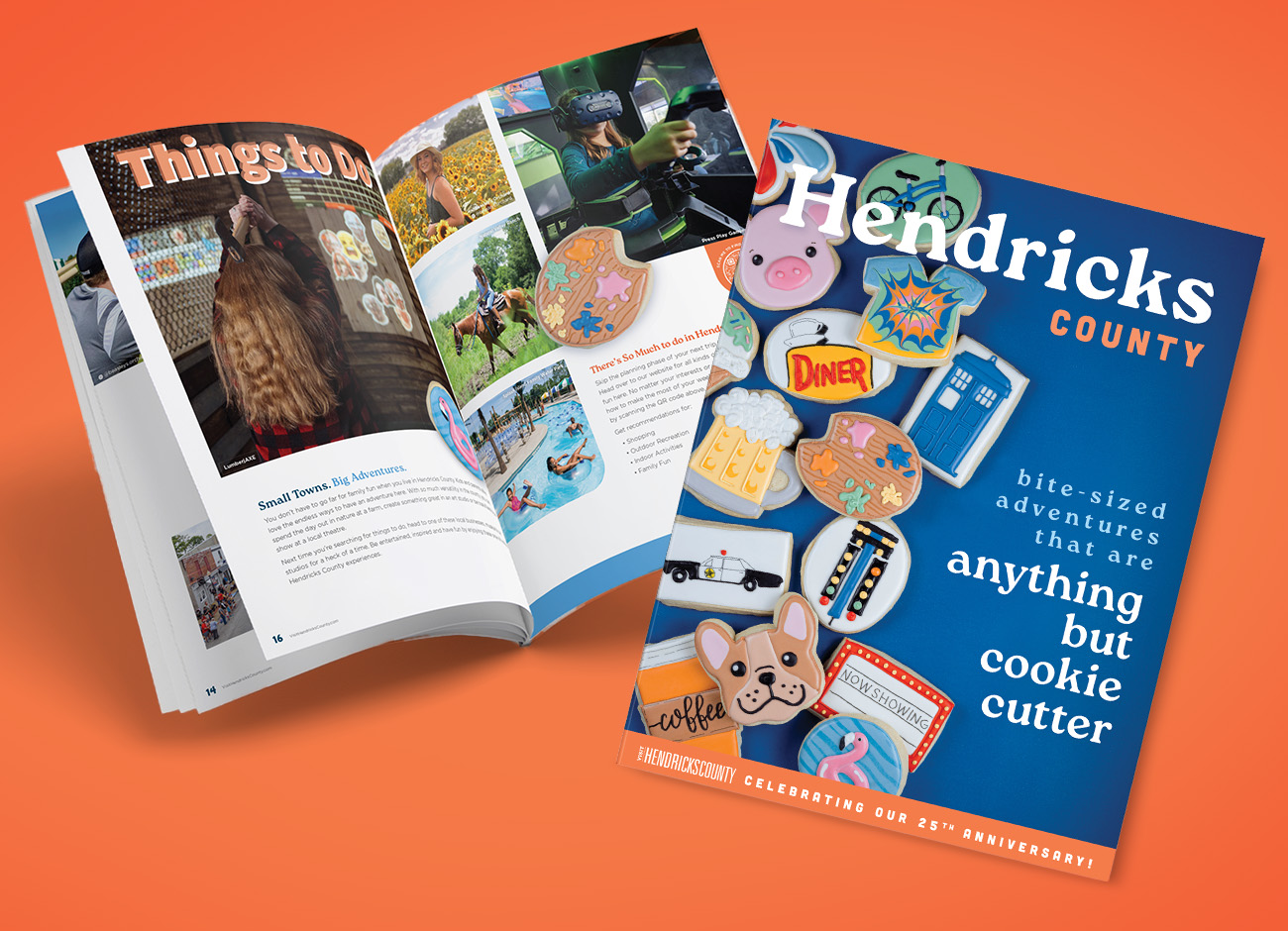 For the past decade, Williams Randall has baked up a visitor guide on behalf of Visit Hendricks County (VHC). These guides give residents and visitors alike something to bite into—places to go, things to see, and activities that speak to a variety of interests. For every county with a destination marketing organization (DMO), you’ll find a visitor guide. That's why each year we create unique ways to engage readers with Visit Hendricks County's offerings.
