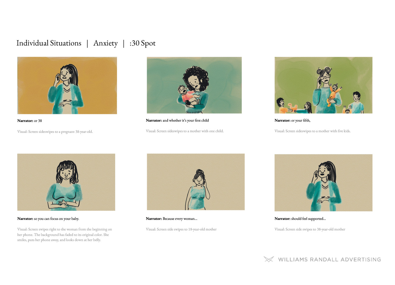 Our designer Rachel Knierman animated each character. Before Knierman began animating, she created mood boards and made recommendations on the animation style. Next, she drew the animations on her iPad and then animated each character using After Effects. Knierman didn’t want the animations to feel too corporate, instead, she opted for a softer, storybook style and drew a wide variety of moms to make the animated characters feel more “human” and relatable.