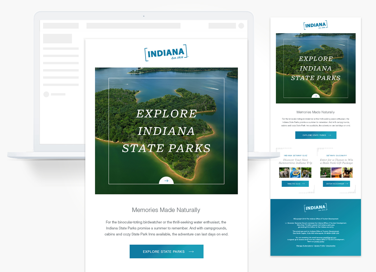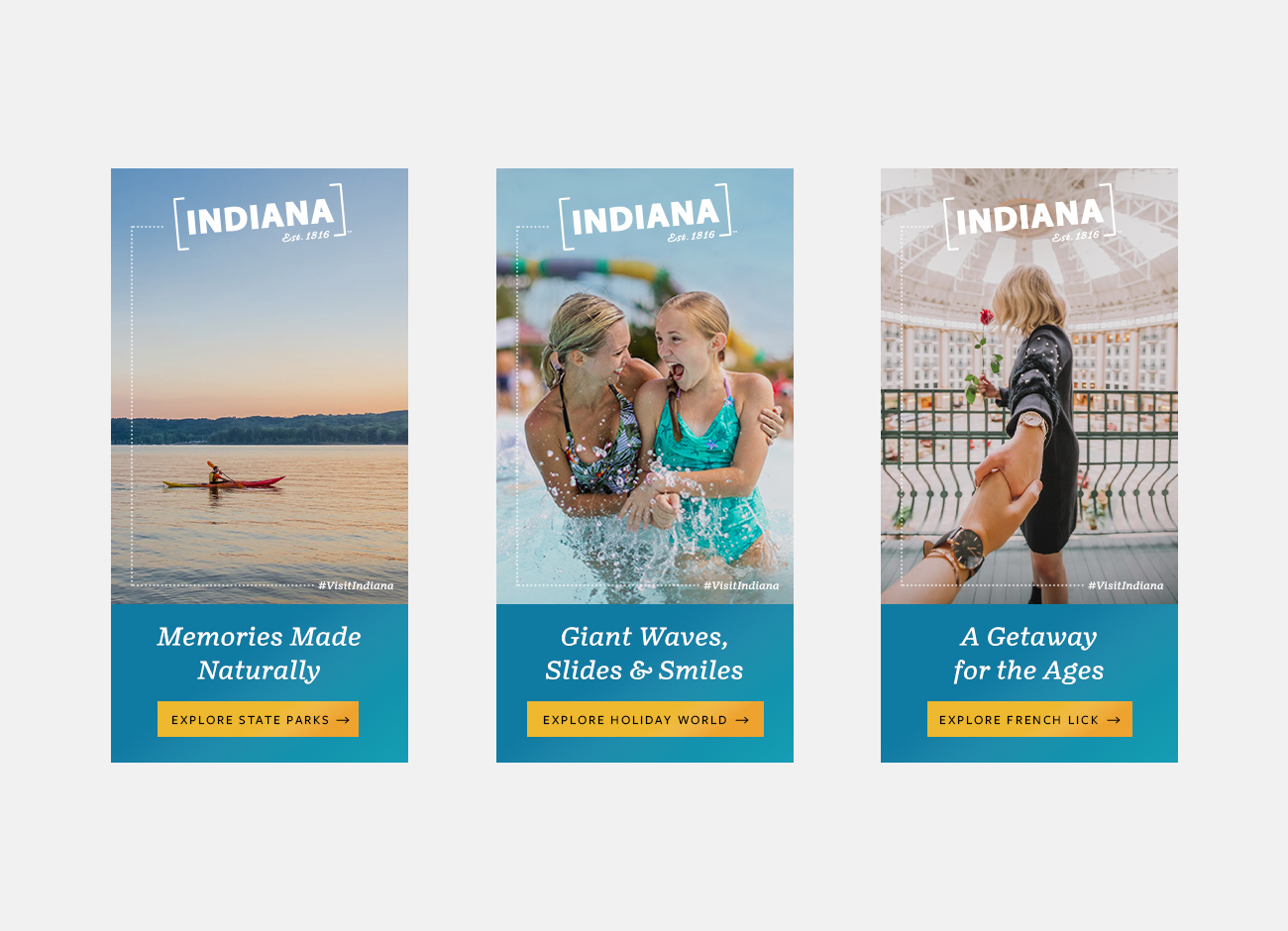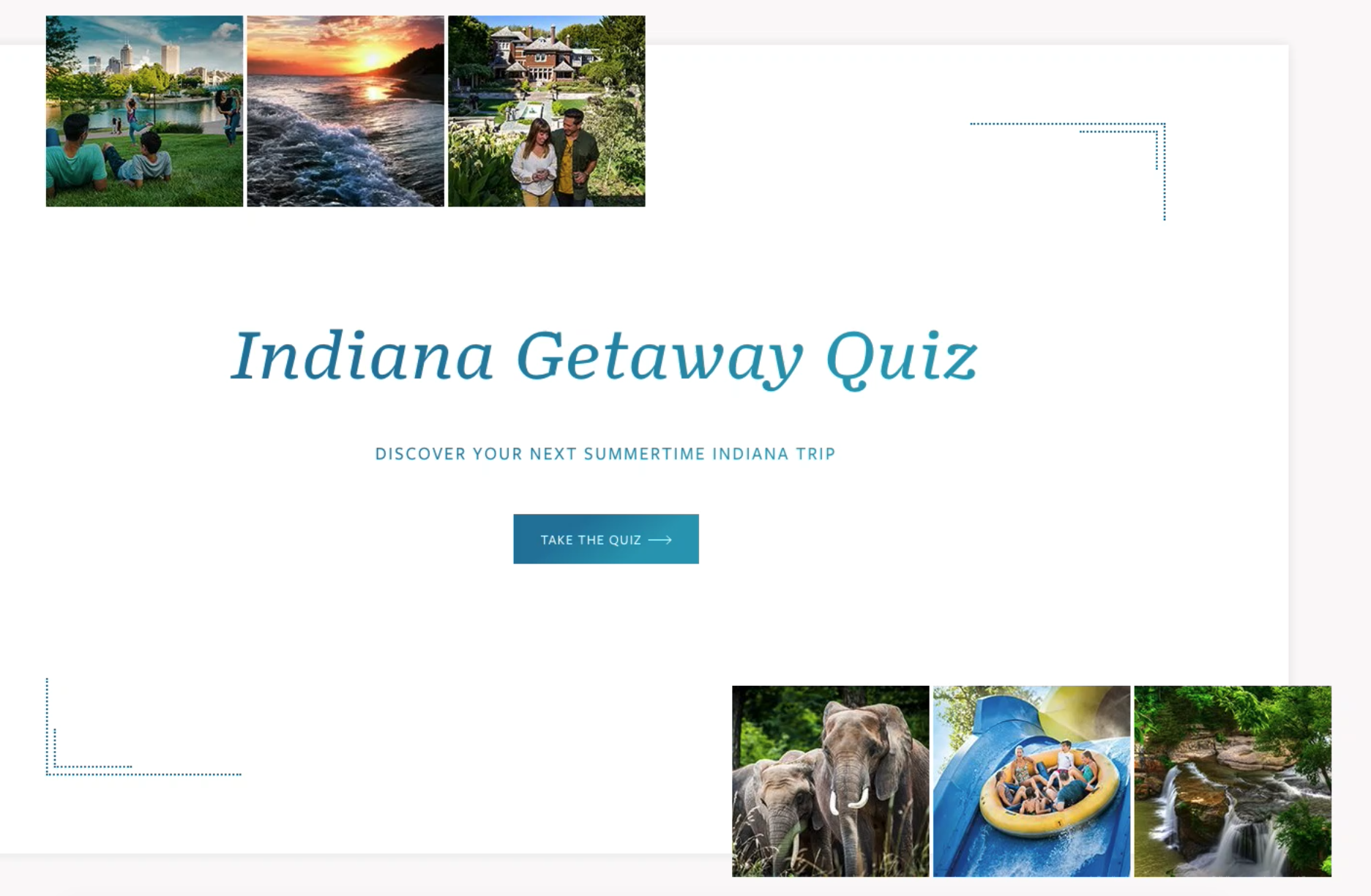 Hooray for travel season! As the weather begins to warm up, people start planning for spring and summer trips. We love helping them get to know about all the great places right here in Indiana for summer travel. Six partners around the state helped to fund a campaign we called Getaways Worth Sharing. In the campaign, we featured those six partner destinations and reached audiences in Chicago, St. Louis, Louisville, and Indiana through TV commercials, outdoor boards, online advertising, magazine ads, and emails. All the creative led to an interactive campaign microsite that we rehauled to make it even more helpful to visitors. And thanks to those changes, total interactions with the site increased 113% over the previous year.